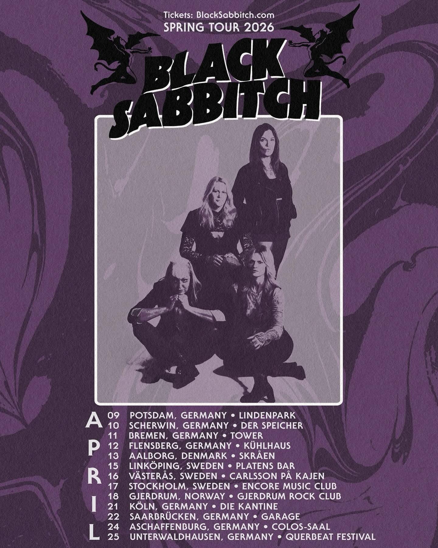 Formed in 2012 by acclaimed session drummer Angie Scarpa, Black Sabbitch quickly became a force to be reckoned with, recruiting an all-star lineup of musicians including Emily Burton (Fireball Ministry), Melanie Makaiwi (Penny Dreadfuls, Scarling), and Alice Austin (Zola Turn). Over the past decade, the band has captivated audiences worldwide, selling out shows and earning the respect of critics, fans, and fellow musicians alike.