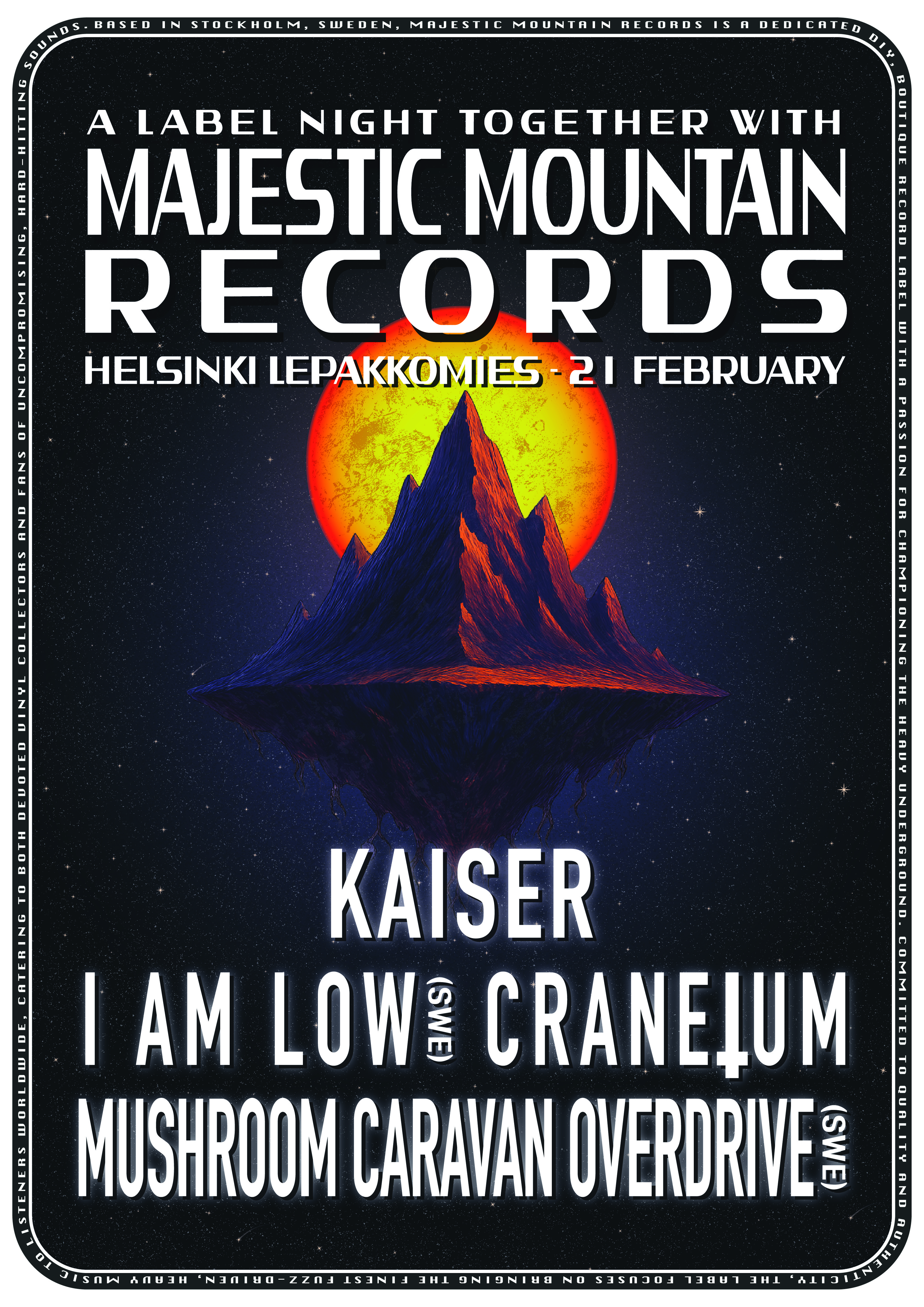 On February 21, 2026, Majestic Mountain Records are bringing their first-ever label fest to Finland, taking over Lepakkomies (Helsinki) with a killer lineup of stoner, doom, and heavy rock goodness:
